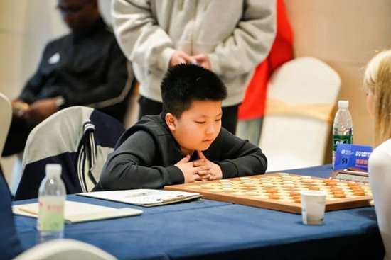 成都棋院少年队队员郑源璟在比赛中不畏强敌、